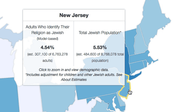 Additionally, sophisticated data- or story-driven maps often fold automatic panning and zooming into interactions with the data or story, a helpful way to guide users through something potentially very complex. For example, clicking on the state choropleth map below zooms to a state and reveals data in finer geographic detail.