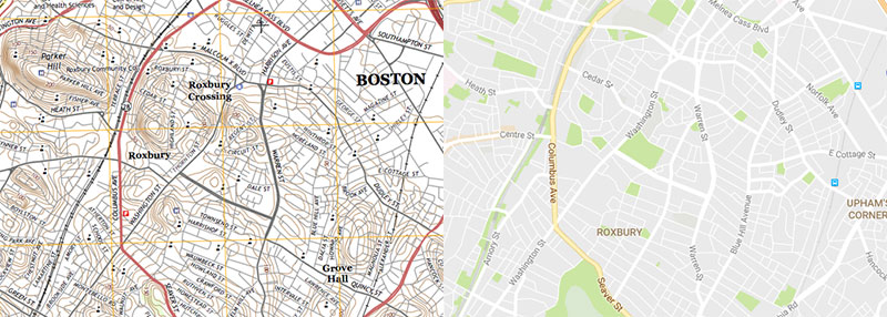 USGS topographic maps and Google Maps are classic and modern examples of reference maps, mostly intended to show where things are.